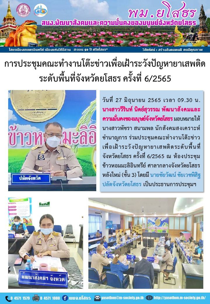 ร่วมประชุมคณะทำงานโต๊ะข่าวเพื่อเฝ้าระวังปัญหายาเสพติดระดับพื้นที่จังหวัดยโสธร ครั้งที่ 6/2565 (27 มิถุนายน 2565)