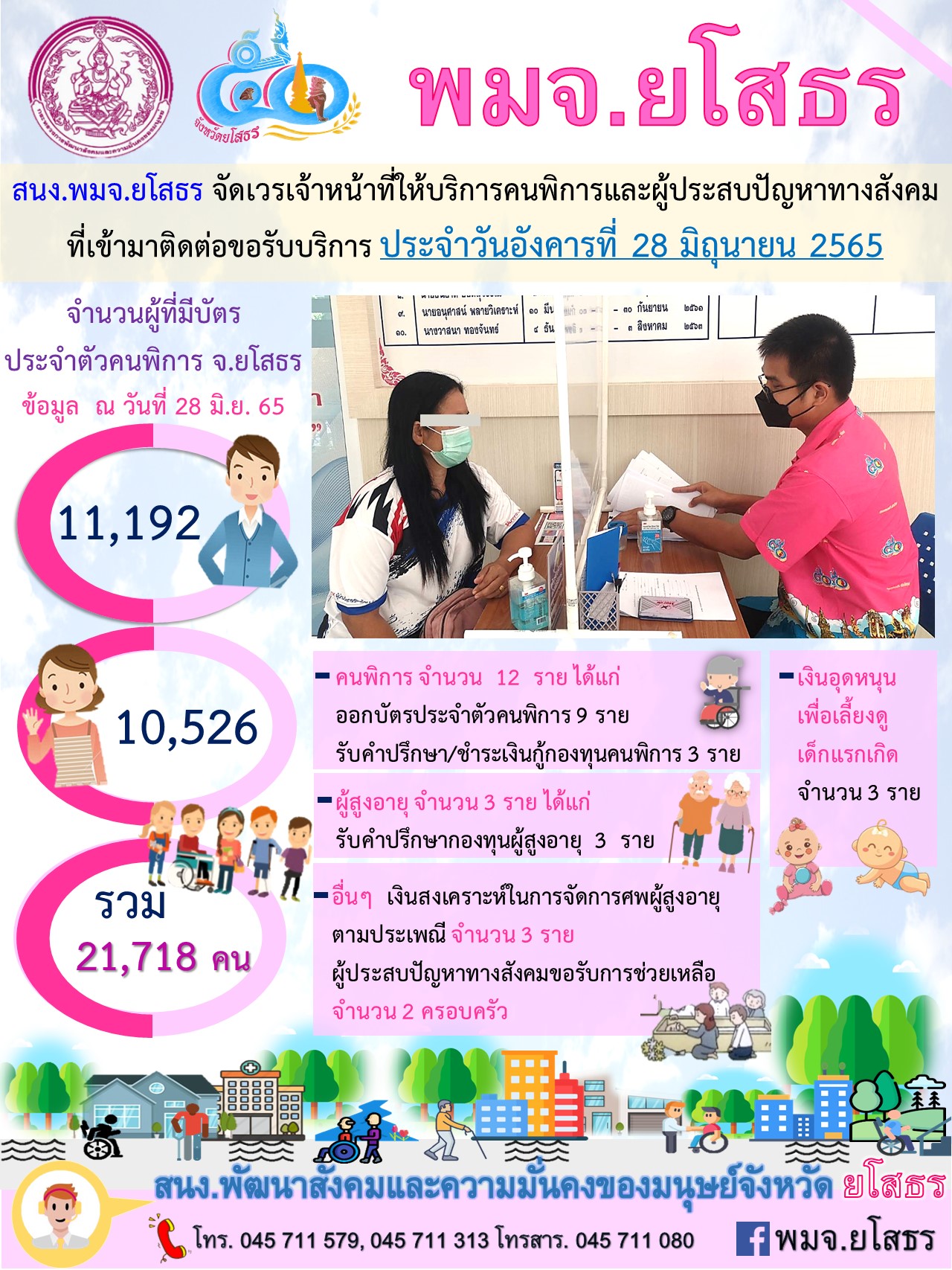 สนง.พมจ.ยโสธร จัดเวรเจ้าหน้าที่ให้บริการคนพิการและผู้ประสบปัญหาทางสังคม ที่เข้ามาติดต่อขอรับบริการ (28 มิถุนายน 2565)