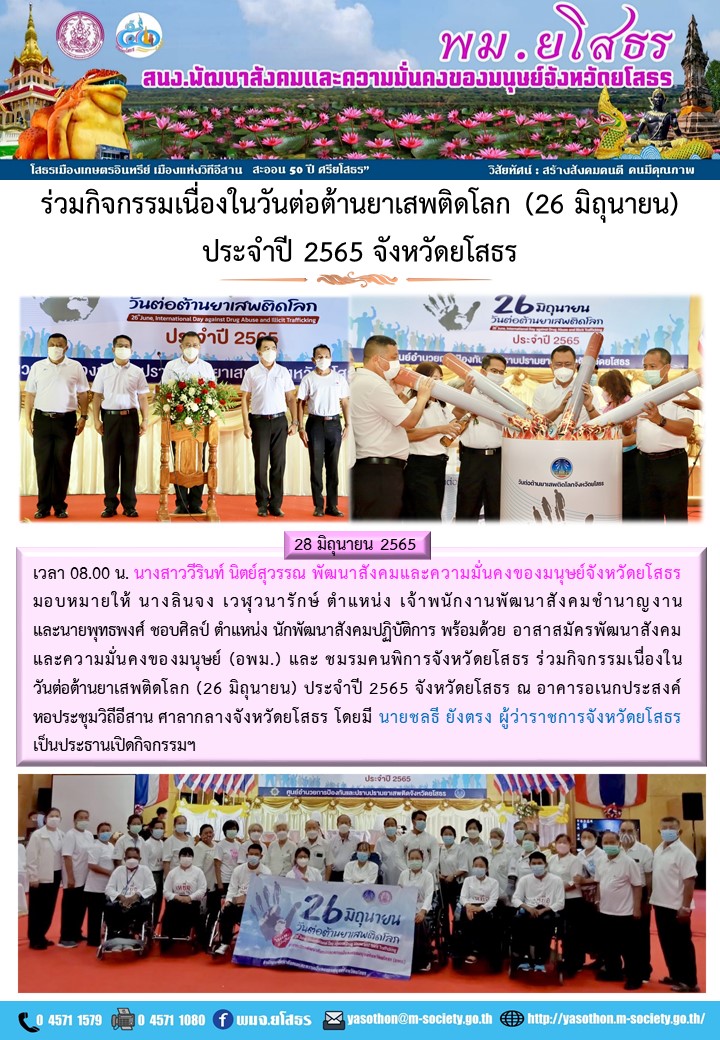 ร่วมกิจกรรมเนื่องใน วันต่อต้านยาเสพติดโลก (26 มิถุนายน) ประจำปี 2565 จังหวัดยโสธร (28 มิถุนายน 2565)