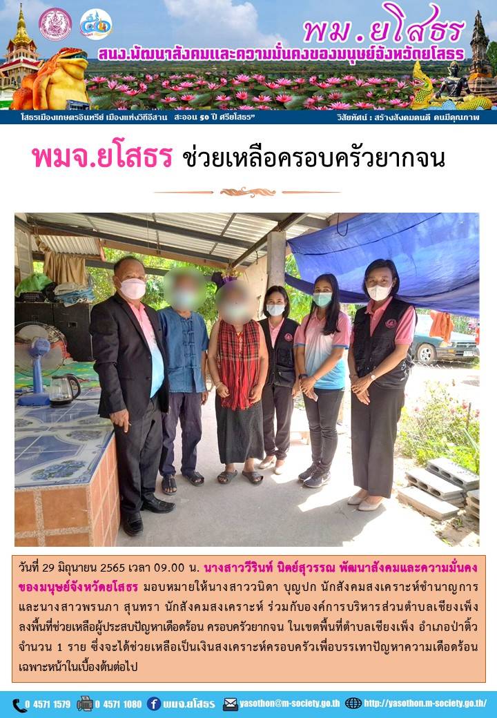 พมจ.ยโสธร ช่วยเหลือครอบครัวยากจน (29 มิถุนายน 2565)