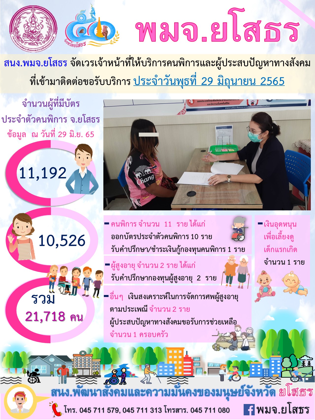 สนง.พมจ.ยโสธร จัดเวรเจ้าหน้าที่ให้บริการคนพิการและผู้ประสบปัญหาทางสังคม ที่เข้ามาติดต่อขอรับบริการ (29 มิถุนายน 2565)