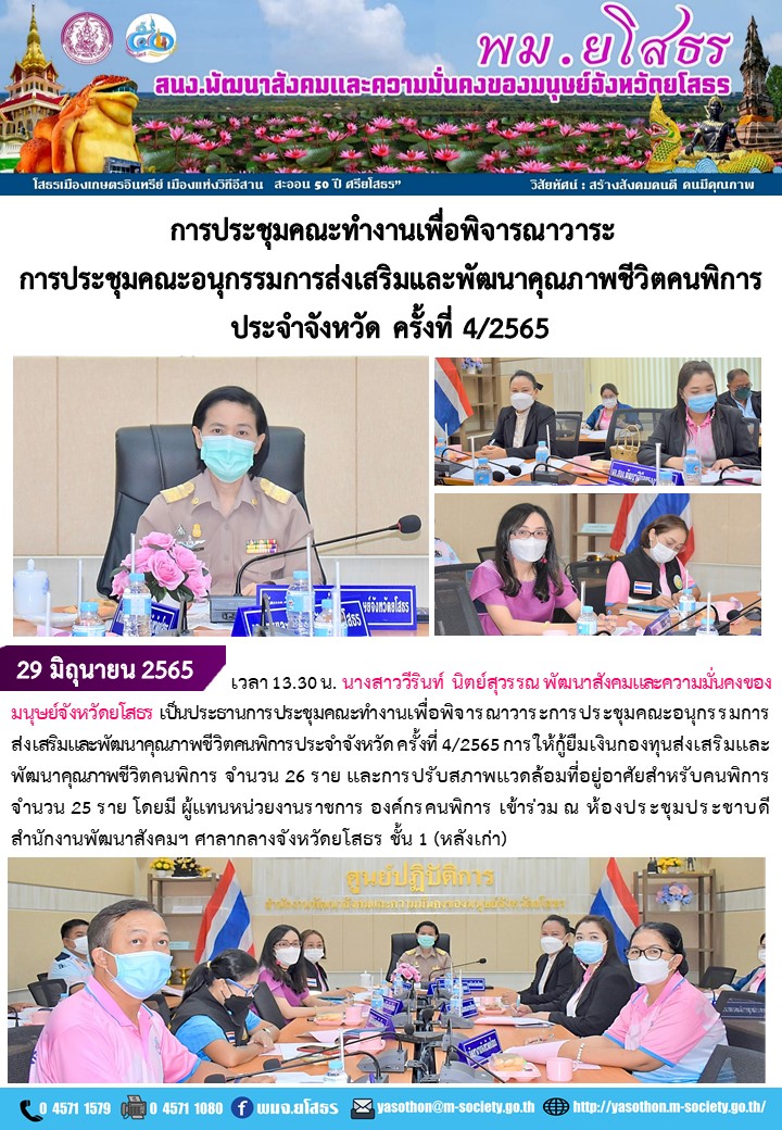 ประชุมคณะทำงานเพื่อพิจารณาวาระการประชุมคณะอนุกรรมการส่งเสริมและพัฒนาคุณภาพชีวิตคนพิการประจำจังหวัด ครั้งที่ 4/2565 (29 มิถุนายน 2565)