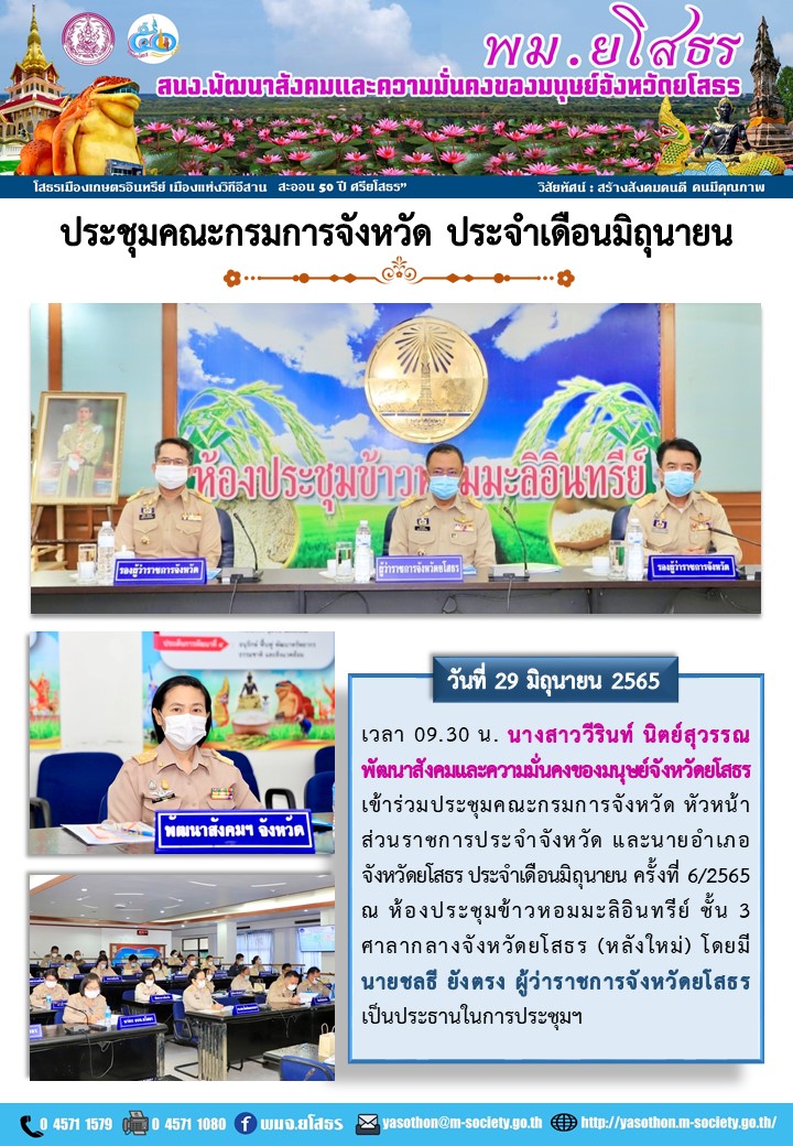 ประชุมคณะกรมการจังหวัด ประจำเดือนมิถุนายน (29 มิถุนายน 2565)