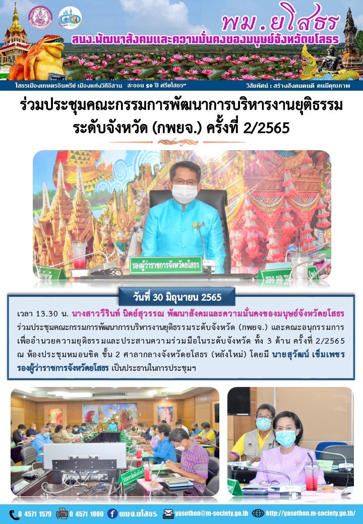 ร่วมประชุมคณะกรรมการพัฒนาการบริหารงานยุติธรรมระดับจังหวัด (กพยจ.) ครั้งที่ 2/2565 (30 มิถุนายน 2565)