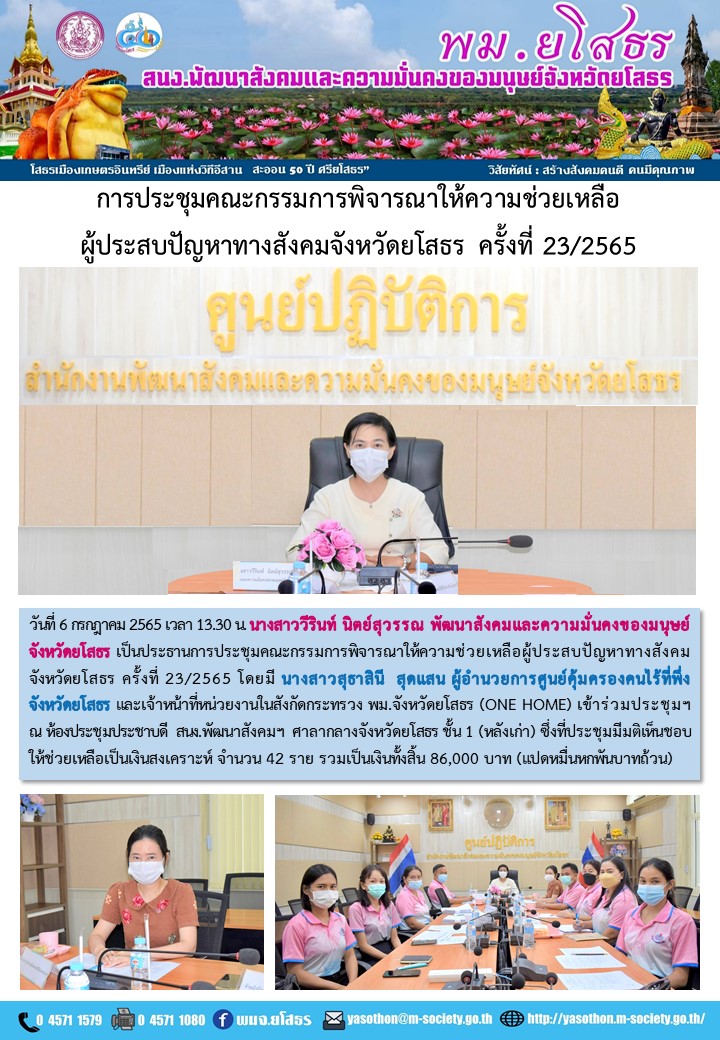 การประชุมคณะกรรมการพิจารณาให้ความช่วยเหลือผู้ประสบปัญหาทางสังคมจังหวัดยโสธร ครั้งที่ 23/2565 (6 กรกฎาคม 2565)