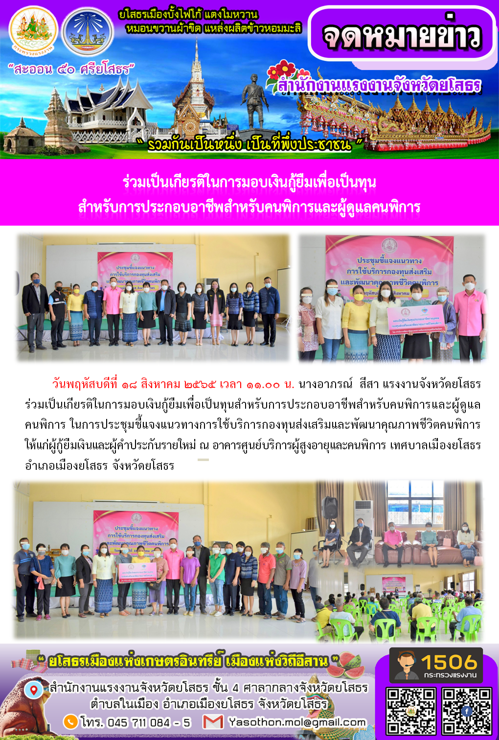 ผู้โพสต์ : [สำนักงานแรงงานจังหวัดยโสธร] ทั่วไป