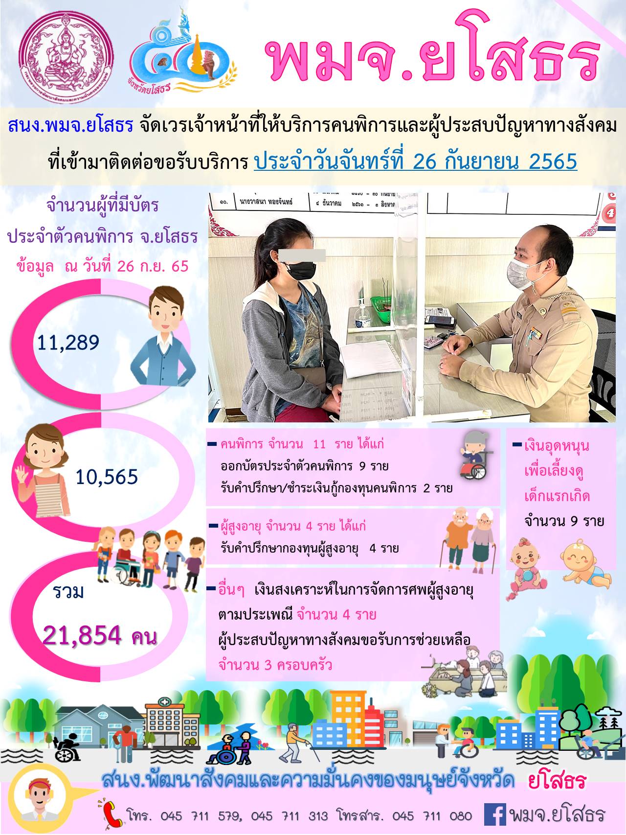 สนง.พมจ.ยโสธร จัดเวรเจ้าหน้าที่ให้บริการคนพิการและผู้ประสบปัญหาทางสังคม ที่เข้ามาติดต่อขอรับบริการ (26 กันยายน 2565)