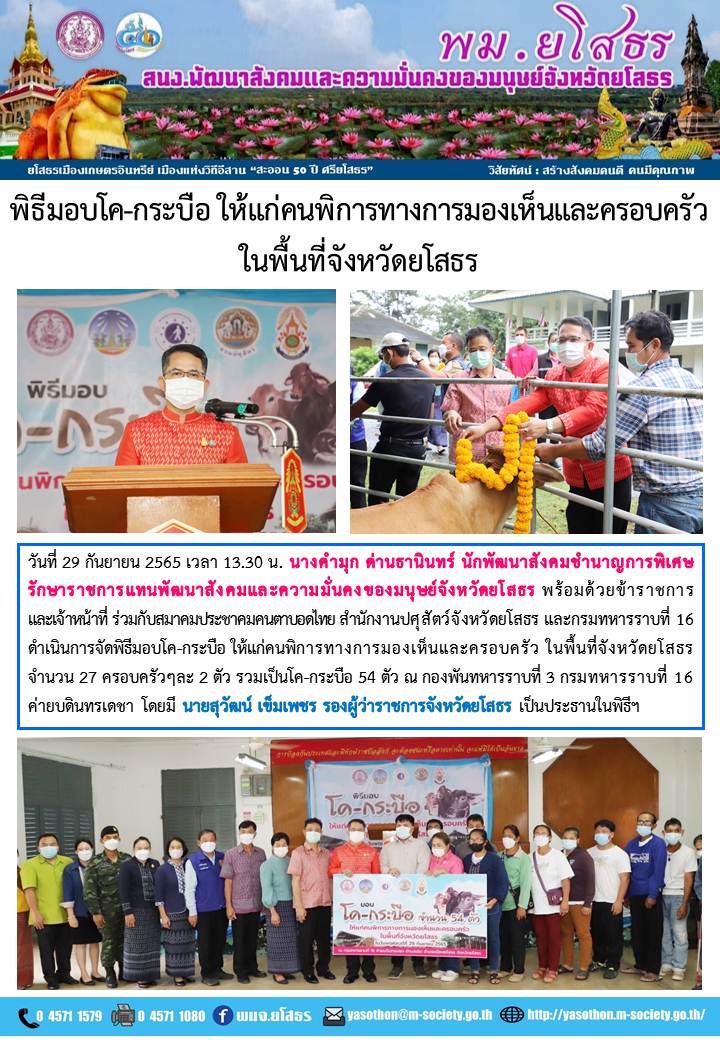 จัดพิธีมอบโค-กระบือ ให้แก่คนพิการทางการมองเห็นและครอบครัว ในพื้นที่จังหวัดยโสธร (29 กันยายน 2565)