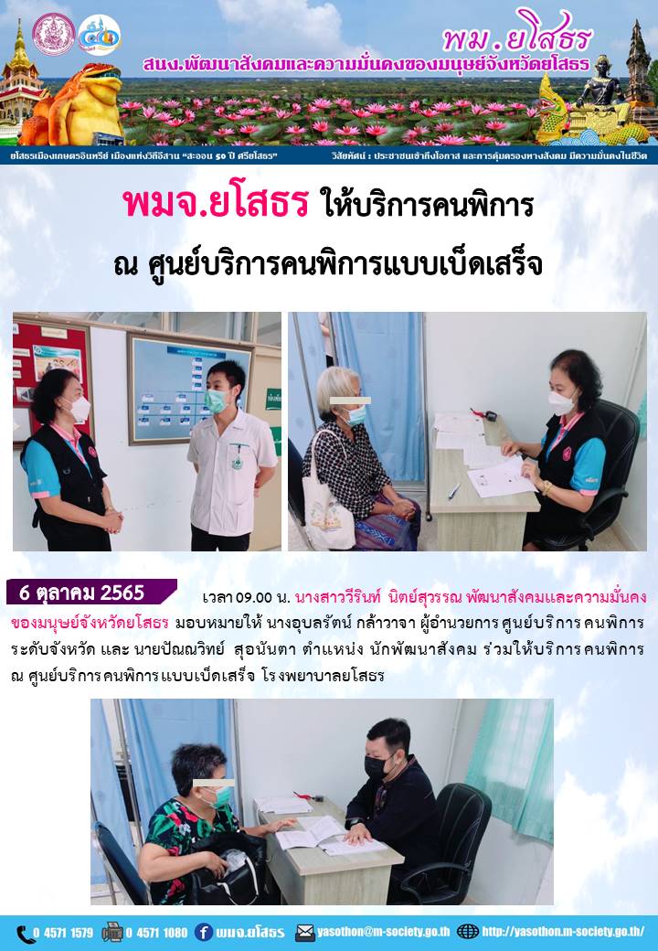 พมจ.ยโสธร ร่วมให้บริการคนพิการ (6 ตุลาคม 2565)