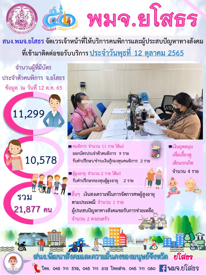 สนง.พมจ.ยโสธร จัดเวรเจ้าหน้าที่ให้บริการคนพิการและผู้ประสบปัญหาทางสังคม ที่เข้ามาติดต่อขอรับบริการ (12 ตุลาคม 2565)