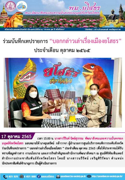 ร่วมบันทึกเทปรายการ " บอกกล่าวเล่าเรื่องเมืองยโสธร " ประจำเดือน ตุลาคม 2565 (17 ตุลาคม 2565)