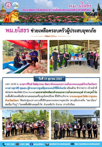 พม.ยโสธร ช่วยเหลือผู้ประสบอุทกภัย (19 ตุลาคม 2565)
