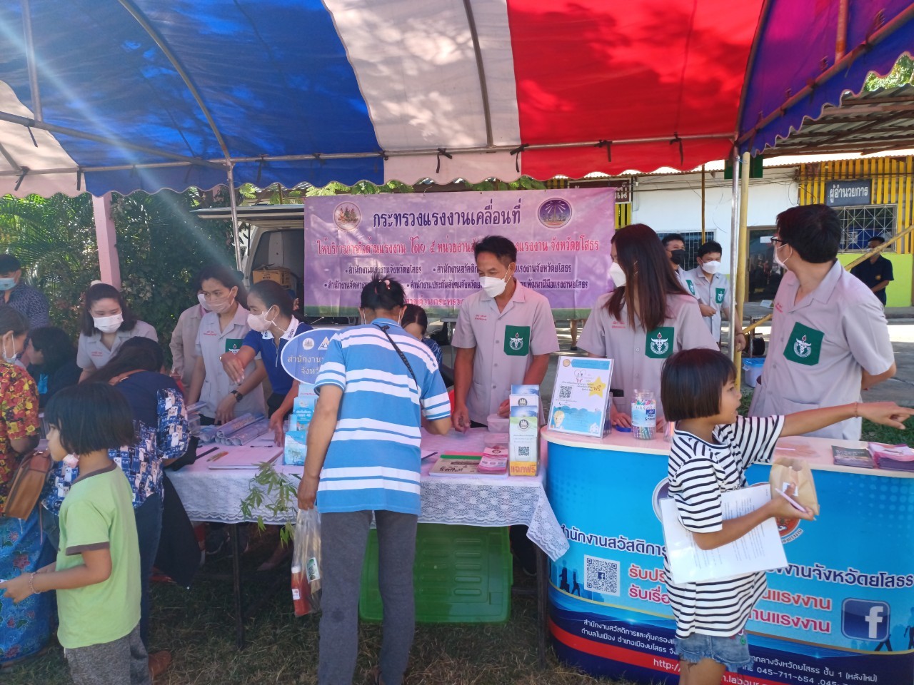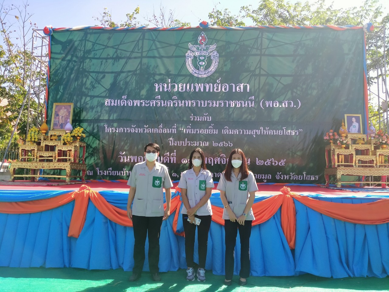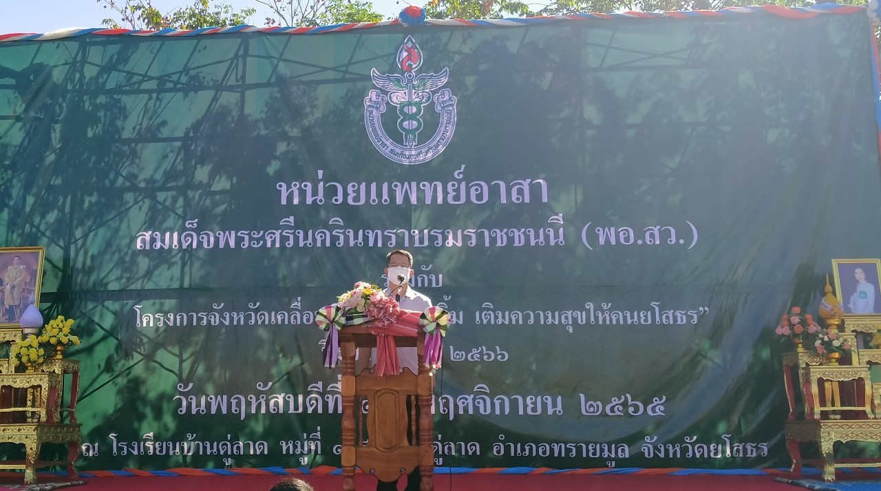 วันที่ 17 พ.ย. 2565 (13:14 น.)วันพฤหัสบดีที่ 17 พฤศจิกายน พ.ศ. 2565 เวลา 8.00 น. รองผู้ว่าราชการจังหวัดยโสธร รักษาราชการแทนผู้ว่าราชการจังหวัดยโสธร นายสุวัฒน์ เข็มเพชร เป็นประธานเปิดกิจกรรมหน่วยแพทย์อาสาสมเด็จพระศรีนครินทราบรมราชชนนี (พอ.สว.) ร่วมกับ โครงการจังหวัดเคลื่อนที่ "เพิ่มรอยยิ้ม เติมความสุข ให้คนยโสธร"ประจำปีงบประมาณ พ.ศ.2566 พร้อมด้วย คณะส่วนราชการ หน่วยงาน และอาสาสมัคร พอ.สว. ทั้งนี้นางสาวสุจิตตรา เยาวราช นักวิชาการแรงงานชำนาญการ รักษาราชการแทนสวัสดิการและคุ้มครองแรงงานจังหวัดยโสธร พร้อมด้วยเจ้าหน้าที่สำนักงานฯ ได้นำภารกิจสำนักงานฯ ออกให้บริการแก่ประชาชนในพื้นที่ห่างไกล โดยมีวัตถุประสงค์ เพื่อให้บริการประชาชนในทุก ๆ ด้าน อาทิเช่น ด้านสาธารณสุข ส่งเสริมสุขภาพ และป้องกันโรค แจ้งข้อมูลข่าวสารต่าง ๆ แก่ประชาชนในท้องถิ่นทุรกันดาร ห่างไกลคมนาคม และเพื่อเทิดพระเกียรติเนื่องในวันคล้ายวันเสด็จสวรรคตสมเด็จพระศรีนครินทราบรมราชชนนี ณ บ้านดู่ลาด หมู่ที่ 1,9 ตำบลดู่ลาด อำเภอทรายมูล จังหวัดยโสธร ทั้งนี้ ผู้เข้าร่วมกิจกรรมทุกคนสวมหน้ากากอนามัยตลอดเวลาที่เข้าร่วมกิจกรรม โดยถือปฏิบัติตามมาตรการเฝ้าระวังป้องกันและควบคุมการแพร่ระบาดของโรคติดเชื้อไวรัสโคโรนา 2019