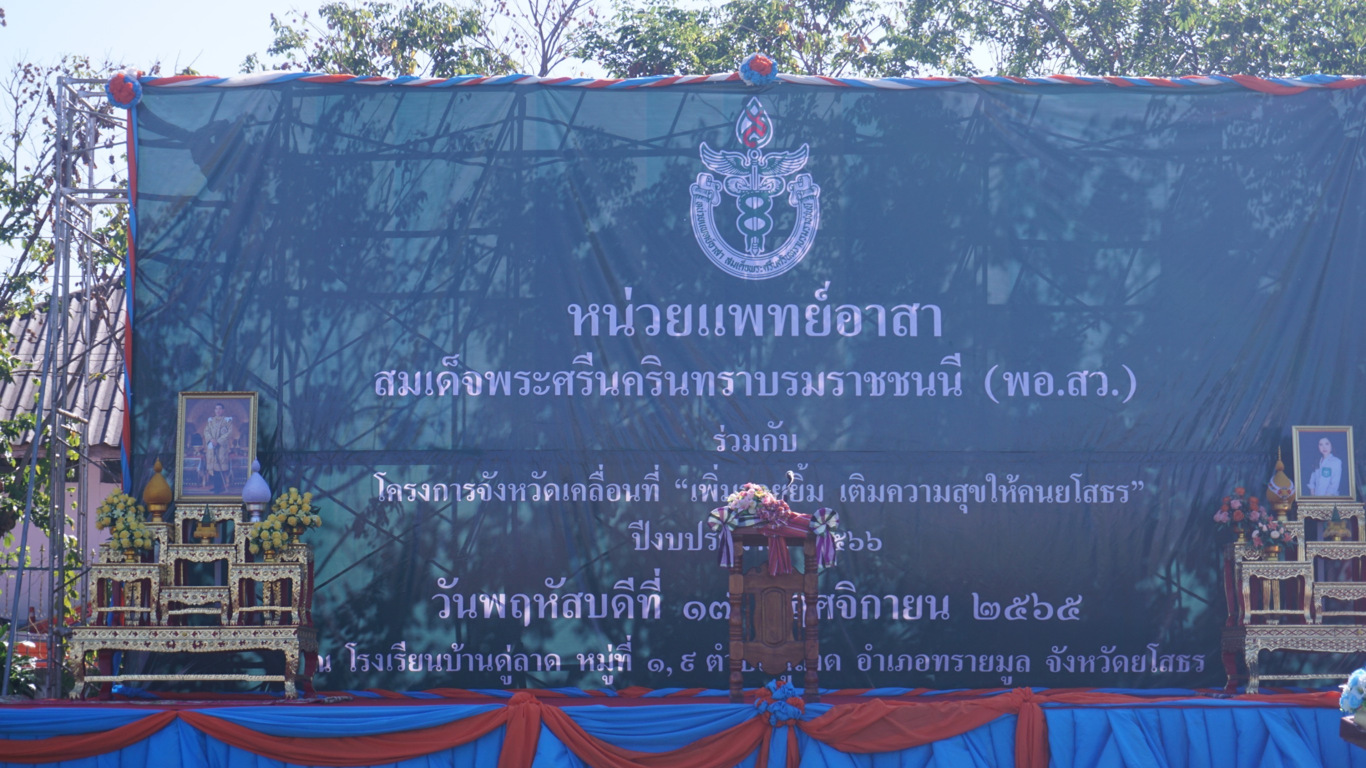 วันที่ 17 พ.ย. 2565 (23:30 น.)วันที่ 17 พฤศจิกายน พ.ศ. 2565 เวลา 09.30 น. นายสุวัฒน์ เข็มเพชร รองผู้ว่าราชการจังหวัดยโสธร รักษาราชการแทนผู้ว่าราชการจังหวัดยโสธร เป็นประธานในพิธีโครงการจังหวัดเคลื่อนที่" เพิ่มรอยยิ้ม เติมความสุข ให้คนยโสธร" , พร้อมด้วย นายชัยวัฒน์ ชัยเวชพิสิฐ ปลัดจังหวัดยโสธร,นางวิชชุฎา เข็มเพชร นายอำเภอทรายมูล หัวหน้าส่วนราชการหรือผู้แทน ผู้นำชุมชนในระดับพื้นที่ และประชาชนทั่วไป ณ โรงเรียนบ้านดู่ลาด ตำบลดู่ลาด อำเภอทรายมูล