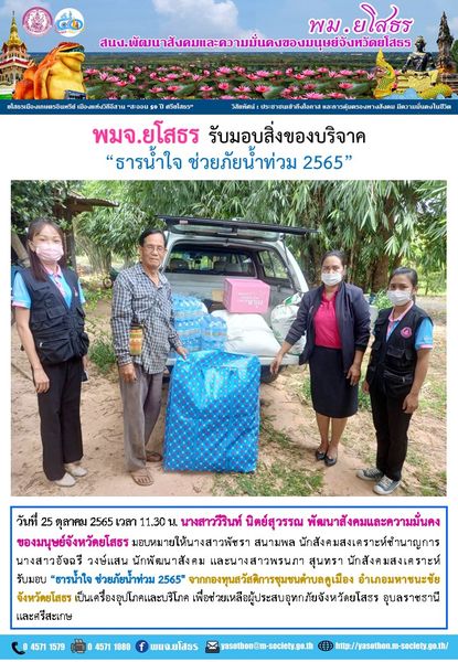 พมจ.ยโสธร รับมอบ "ธารน้ำใจ ช่วยภัยน้ำท่วม 2565" (25 ตุลาคม 2565)