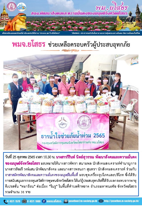 พมจ.ยโสธร ช่วยเหลือครอบครัวผู้ประสบอุทกภัย (25 ตุลาคม 2565)