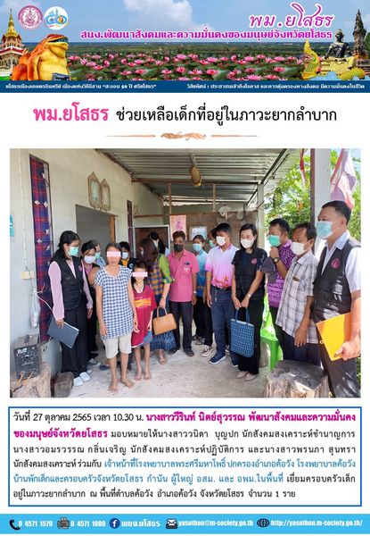 พม.ยโสธร ช่วยเหลือเด็กที่อยู่ในภาวะยากลำบาก (27 ตุลาคม 2565)