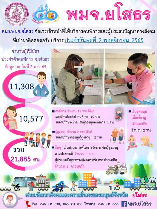 สนง.พมจ.ยโสธร จัดเวรเจ้าหน้าที่ให้บริการคนพิการและผู้ประสบปัญหาทางสังคม ที่เข้ามาติดต่อขอรับบริการ (2 พฤศจิกายน 2565)