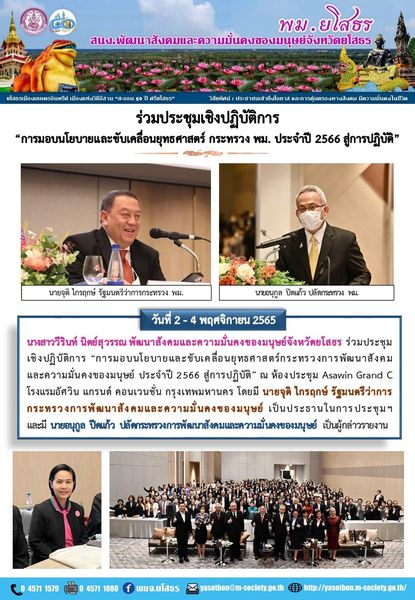 ร่วมประชุมเชิงปฏิบัติการ “การมอบนโยบายและขับเคลื่อนยุทธศาสตร์กระทรวงการพัฒนาสังคมและความมั่นคงของมนุษย์ ประจำปี 2566 สู่การปฏิบัติ” (4 พฤศจิกายน 2565)