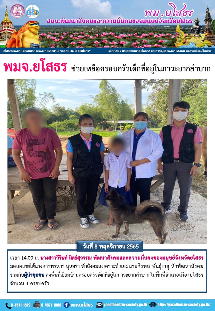พมจ.ยโสธร ช่วยเหลือเด็กที่อยู่ในภาวะยากลำบาก (8 พฤศจิกายน 2565)