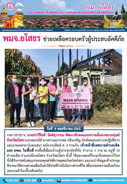 พมจ.ยโสธร ช่วยเหลือครอบครัวผู้ประสบอัคคีภัย (8 พฤศจิกายน 2565)