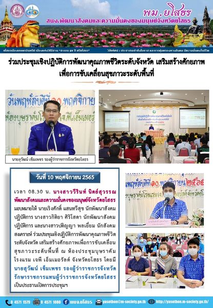 ร่วมประชุมเชิงปฏิบัติการพัฒนาคุณภาพชีวิตระดับจังหวัด เสริมสร้างศักยภาพเพื่อการขับเคลื่อนสุขภาวะระดับพื้นที่ (10 พฤศจิกายน 2565)