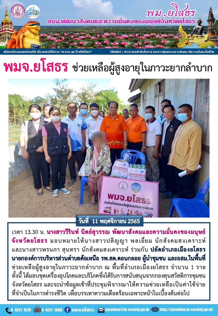 พม.ยโสธร ช่วยเหลือผู้สูงอายุในภาวะยากลำบาก (11 พฤศจิกายน 2565)