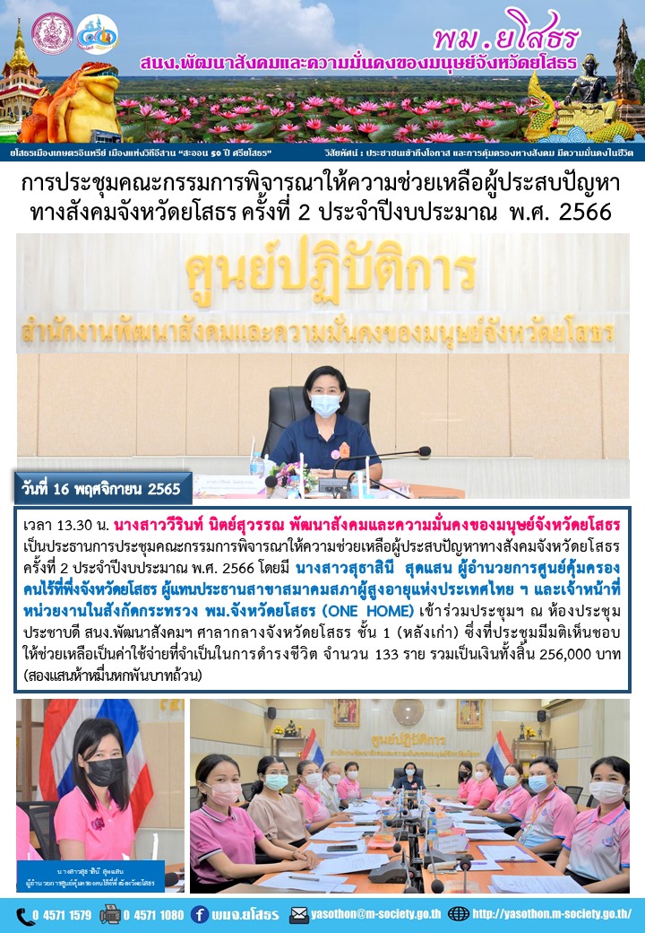 ประชุมคณะกรรมการพิจารณาให้ความช่วยเหลือผู้ประสบปัญหาทางสังคมจังหวัดยโสธร ครั้งที่ 2 ประจำปีงบประมาณ พ.ศ. 2566 (16 พฤศจิกายน 2565)