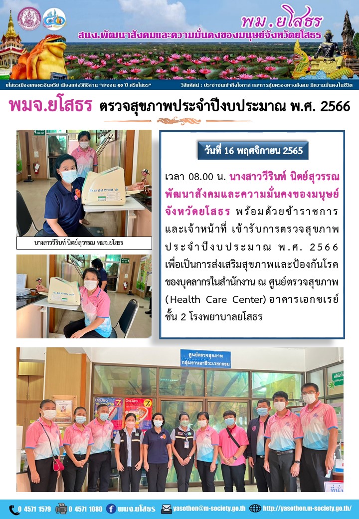 พมจ.ยโสธร เข้ารับการตรวจสุขภาพ ประจำปีงบประมาณ พ.ศ. 2566 (16 พฤศจิกายน 2565)