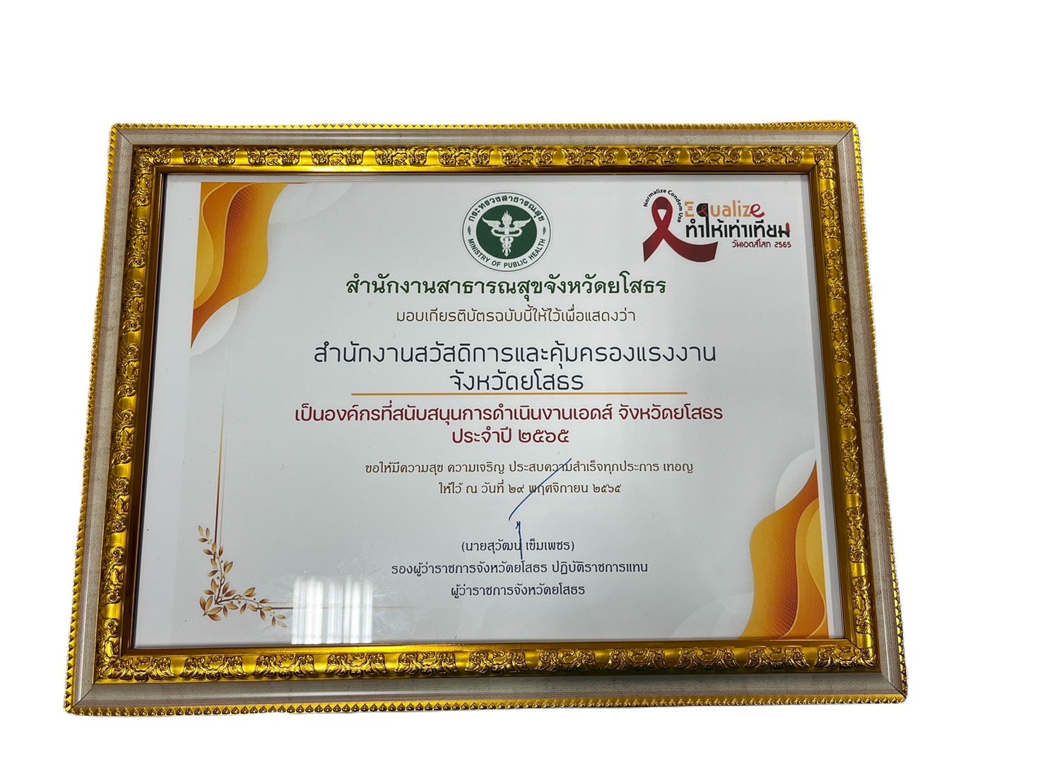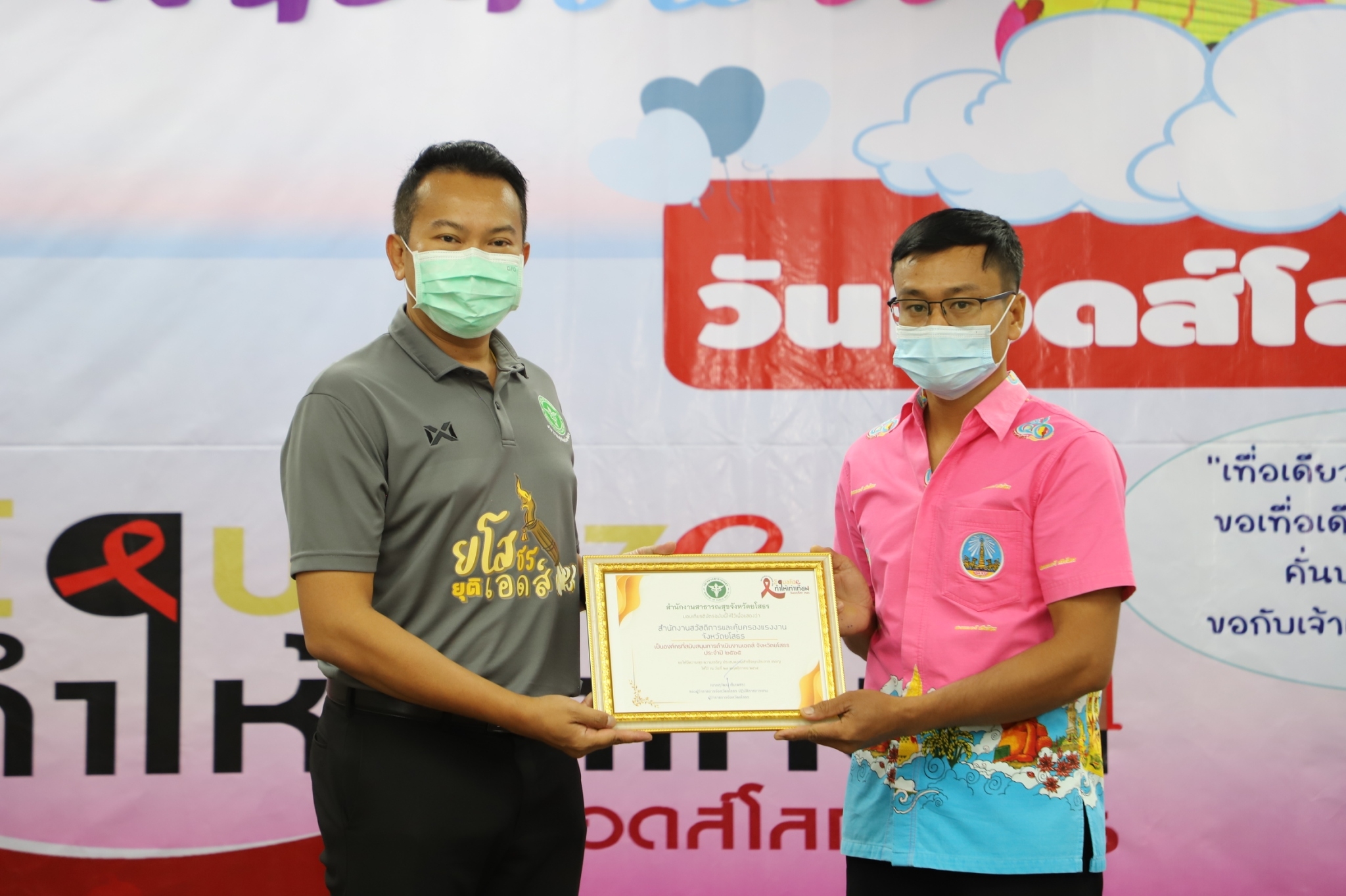 สสค.ยโสธร "ข้าร่วมพิธีรับมอบใบประกาศ ประเภทองค์กรดีเด่นการดำเนินงานเอดส์ จังหวัดยโสธร ประจำปี 2565 และเข้าร่วมการประชุมเยี่ยมเสริมพลังขับเคลื่อนกลไกคุ้มครองสิทธิและสนับสนุนกลไกการป้องกันควบคุมโรคเอดส์"