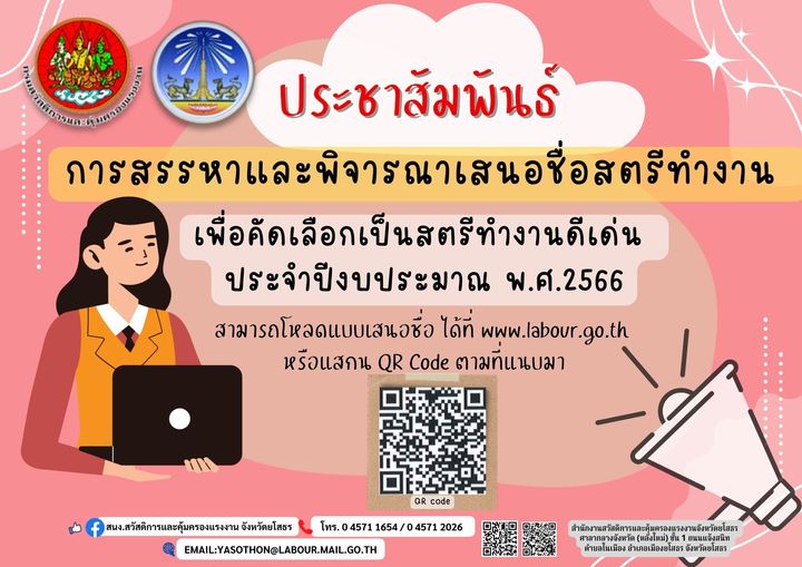 สสค.ยโสธร "การสรรหาและพิจารณาเสนอรายชื่อสตรีทำงาน เพื่อคัดเลือกเป็นสตรีทำงานดีเด่น ประจำปีงบประมาณ พ.ศ.2566"
