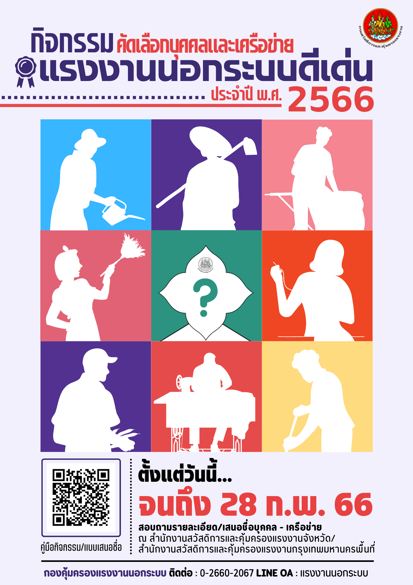 กิจกรรมคัดเลือกบุคคลและเครือข่ายแรงงานนอกระบบดีเด่น ประจำปีพ.ศ.2566 ตั้งแต่วันนี้ - 28 กุมภาพันธ์ 2566