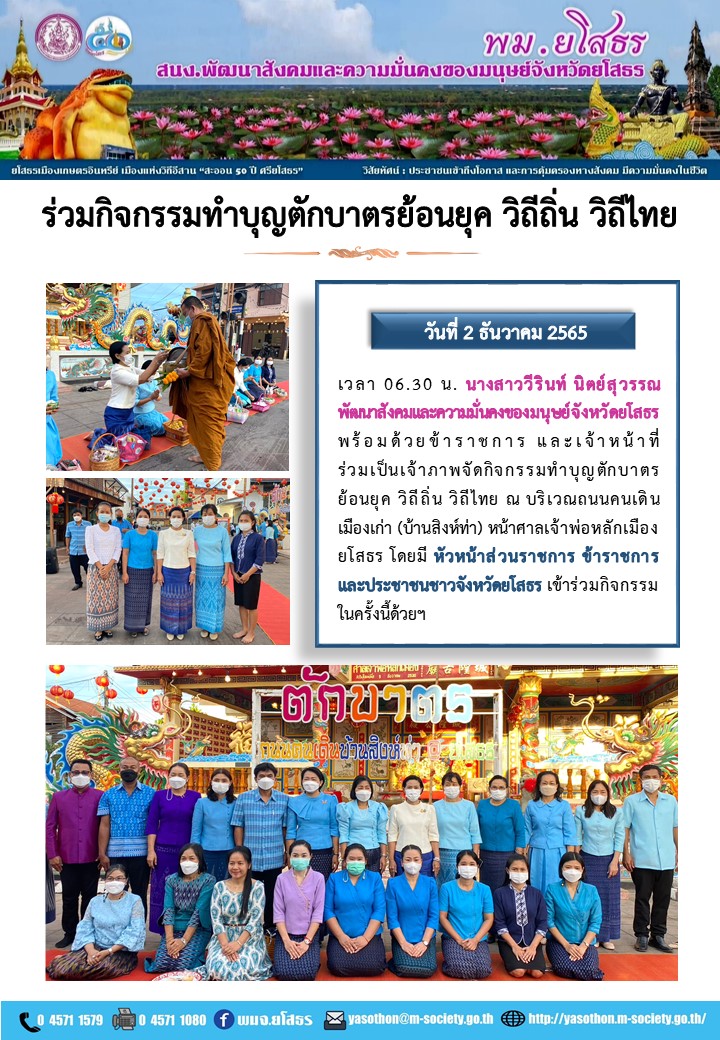 กิจกรรมทำบุญตักบาตร ย้อนยุค วิถีถิ่น วิถีไทย (2 ธันวาคม 2565)