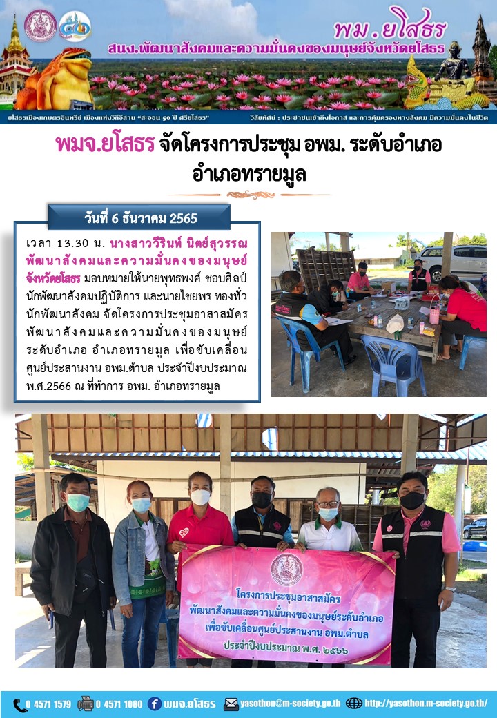 พมจ.ยโสธร จัดโครงการประชุมอาสาสมัครพัฒนาสังคมและความมั่นคงของมนุษย์ระดับอำเภอ ( 6 ธันวาคม 2565)