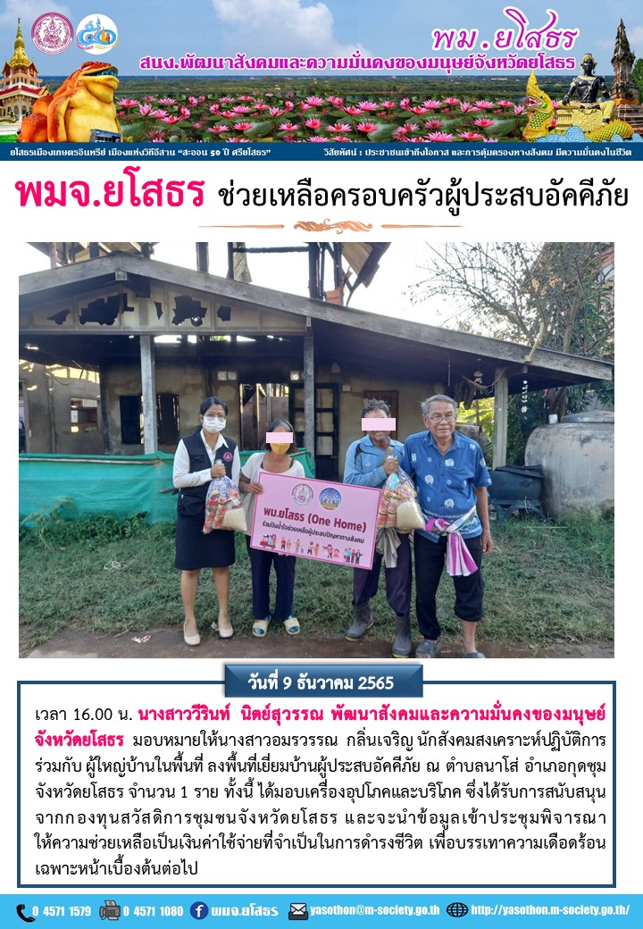 พมจ.ยโสธร ลงพื้นที่เยี่ยมบ้านผู้ประสบอัคคีภัย (9 ธันวาคม 2565)