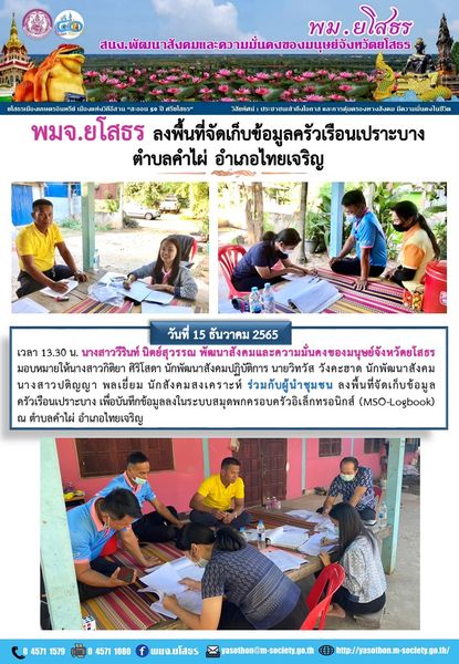 ลงพื้นที่จัดเก็บข้อมูลครัวเรือนเปราะบาง เพื่อบันทึกข้อมูลลงในระบบสมุดพกครอบครัวอิเล็กทรอนิกส์ (MSO-Logbook) (15 ธันวาคม 2565)