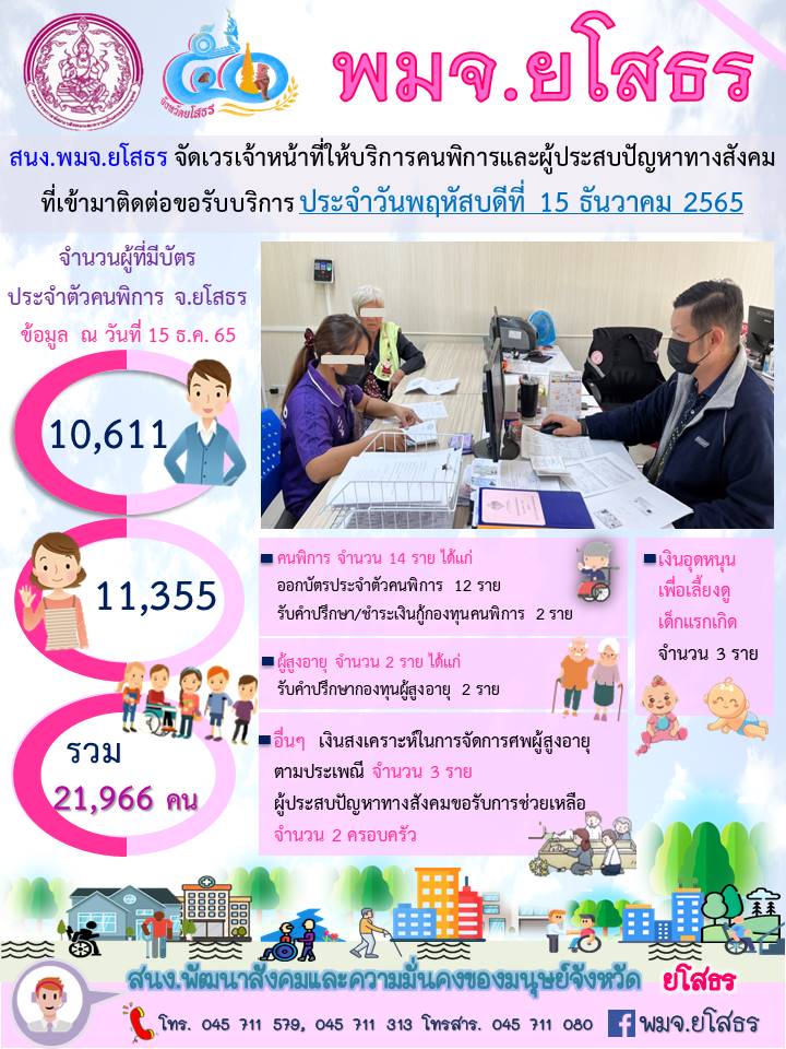 สนง.พมจ.ยโสธร จัดเวรเจ้าหน้าที่ให้บริการคนพิการและผู้ประสบปัญหาทางสังคม ที่เข้ามาติดต่อขอรับบริการ (15 ธันวาคม 2565)
