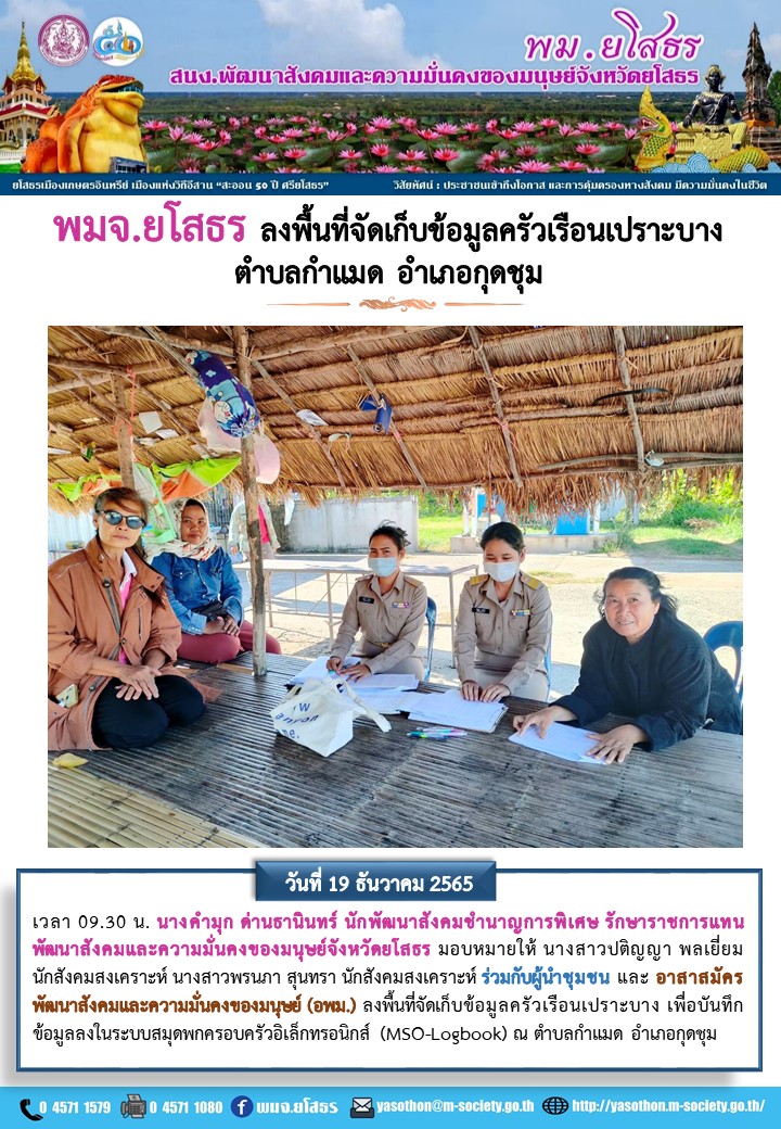 ลงพื้นที่จัดเก็บข้อมูลครัวเรือนเปราะบาง เพื่อบันทึกข้อมูลลงในระบบสมุดพกครอบครัวอิเล็กทรอนิกส์ (MSO-Logbook) (19 ธันวาคม 2565)