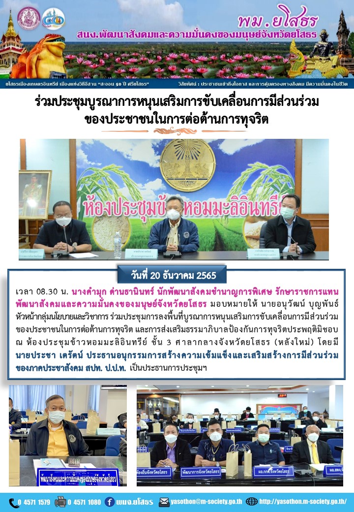 ร่วมประชุมการลงพื้นที่บูรณาการหนุนเสริมการขับเคลื่อนการมีส่วนร่วมของประชาชนในการต่อต้านการทุจริต (20 ธันวาคม 2565)
