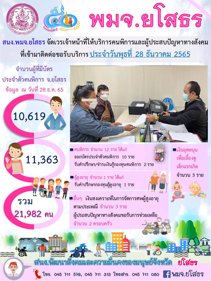 สนง.พมจ.ยโสธร จัดเวรเจ้าหน้าที่ให้บริการคนพิการและผู้ประสบปัญหาทางสังคม ที่เข้ามาติดต่อขอรับบริการ (28 ธันวาคม 2565)
