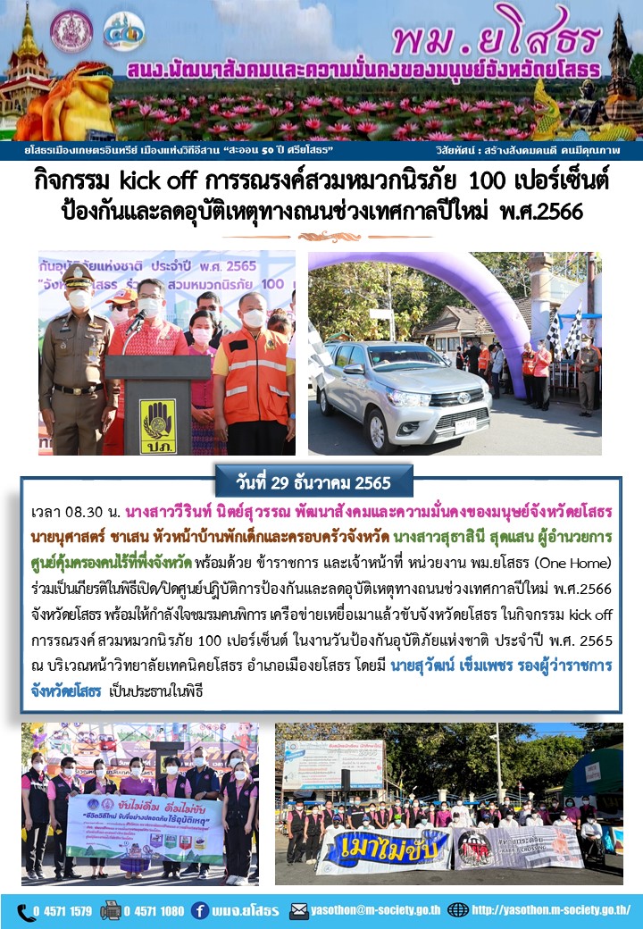 กิจกรรม kick off การรณรงค์สวมหมวกนิรภัย 100 เปอร์เซนต์ ในงานวันป้องกันอุบัติภัยแห่งชาติ ประจำปี พ.ศ. 2565 (29 ธันวาคม 2565)