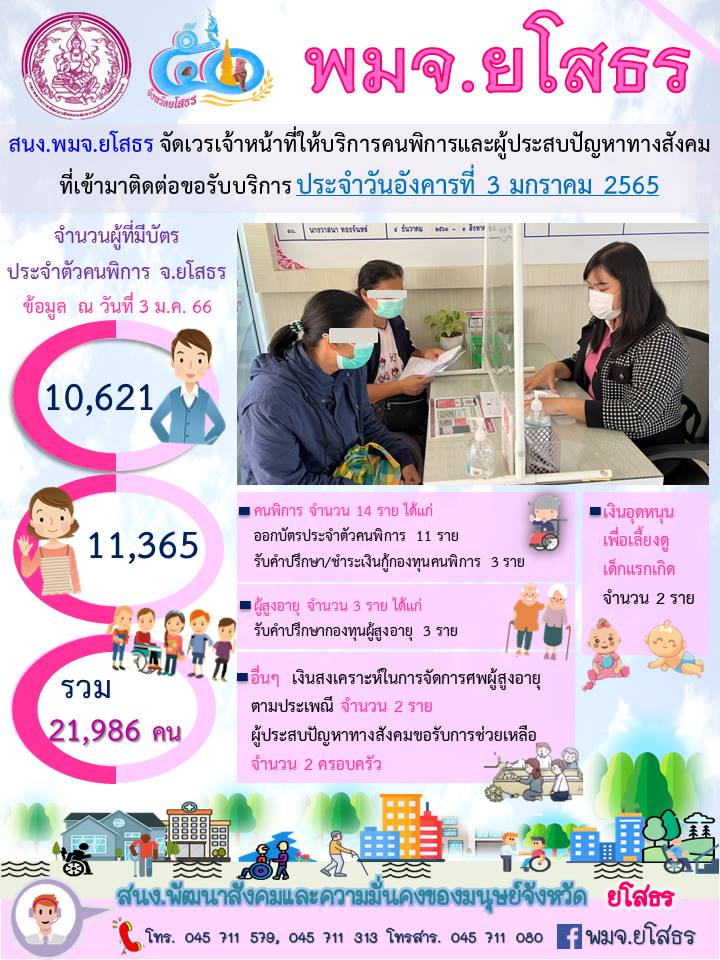 สนง.พมจ.ยโสธร จัดเวรเจ้าหน้าที่ให้บริการคนพิการและผู้ประสบปัญหาทางสังคม ที่เข้ามาติดต่อขอรับบริการ (3 มกราคม 2566)
