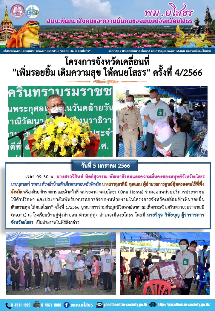 โครงการจังหวัดเคลื่อนที่"เพิ่มรอยยิ้ม เติมความสุข ให้คนยโสธร" ครั้งที่ 1/2566 (5 มกราคม 2566)