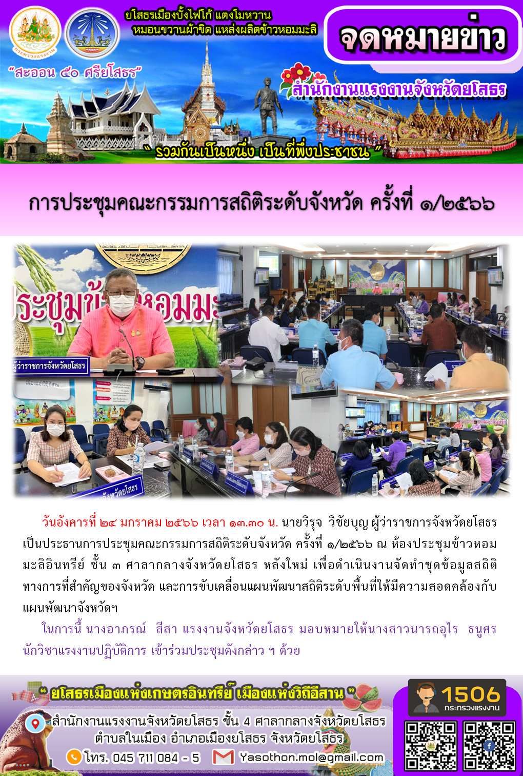 สำนักงานแรงงานจังหวัดยโสธร เข้าร่วมการประชุมคณะกรรมการสถิติระดับจังหวัด ครั้งที่ 1/2566