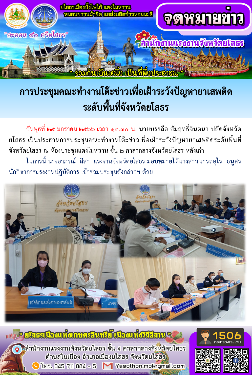 สำนักงานแรงงานจังหวัดยโสธร เข้าร่วมการประชุมคณะทำงานโต๊ะข่าวเพื่อเฝ้าระวังปัญหายาเสพติดระดับพื้นที่จังหวัดยโสธร