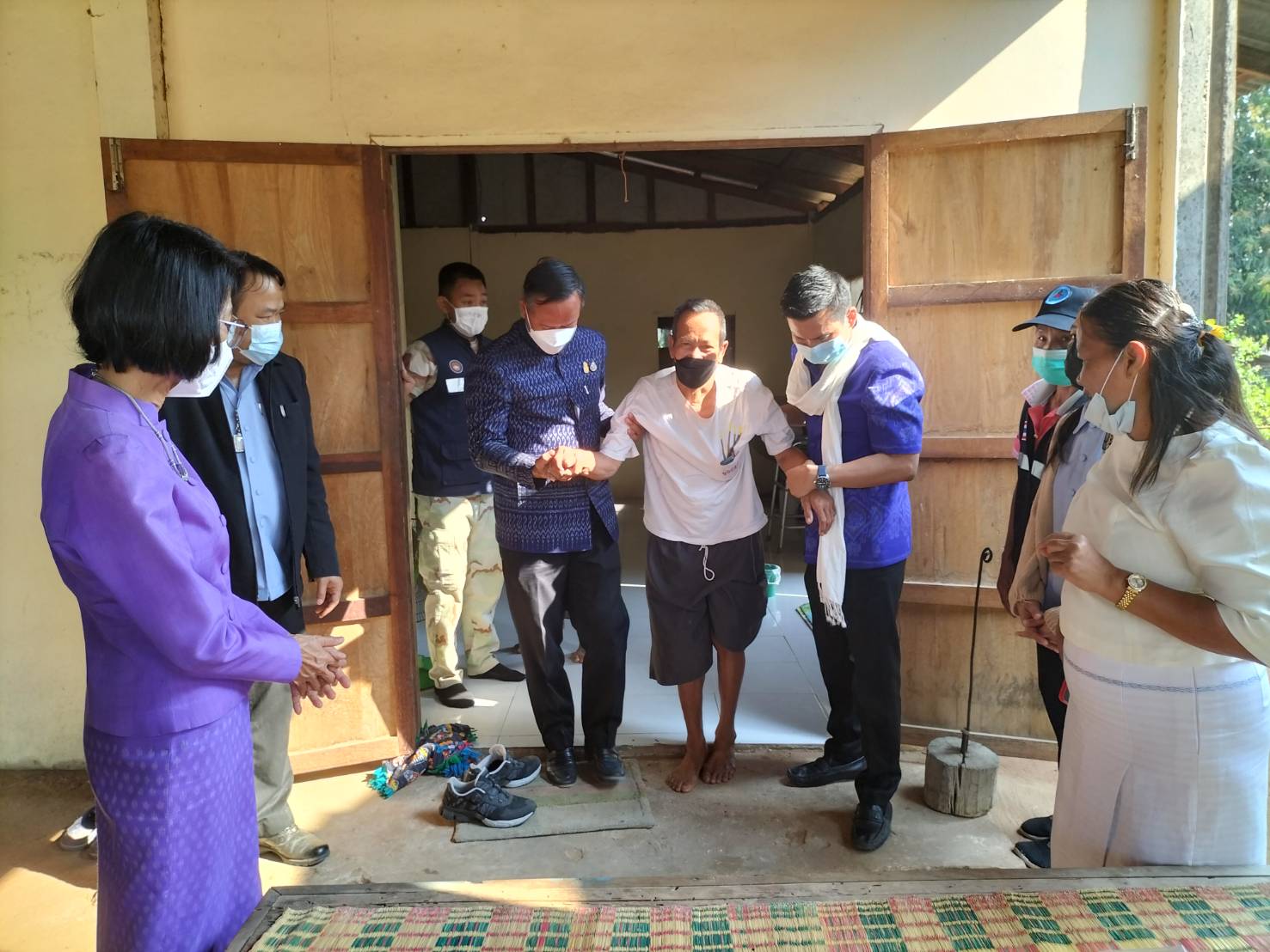 วันที่ 14 ก.พ. 2566 (15:22 น.)วันที่ 9 กุมภาพันธ์ 2566 เวลา 08.30 น. นางยุพิน ภัทรกุลพงศ์ นายอำเภอคำเขื่อนแก้ว/นายกกิ่งกาชาดอำเภอคำเขื่อนแก้ว/คณะทำงานแม่บ้านมหาดไทยจังหวัดยโสธร พร้อมด้วย รองนายกกิ่งกาชาดอำเภอคำเขื่อนแก้ว สมาชิกแม่บ้านมหาดไทยอำเภอคำเขื่อนแก้ว นายกองค์การบริหารส่วนตำบลทุ่งมน นายกองค์การบริหารส่วนตำบลย่อ ปลัดอบต./พนักงาน/เจ้าหน้าที่องค์การบริหารส่วนตำบลทุ่งมน ลงพื้นที่เยี่ยมให้กำลังใจ มอบสิ่งของ และชุดเครื่องนอน แก่ผู้ป่วยติดเตียง จำนวน 4 ราย/3 ครัวเรือน ในพื้นที่บ้านโซง หมู่ที่ 1,8 ต.ทุ่งมน อ.คำเขื่อนแก้ว จ.ยโสธร
