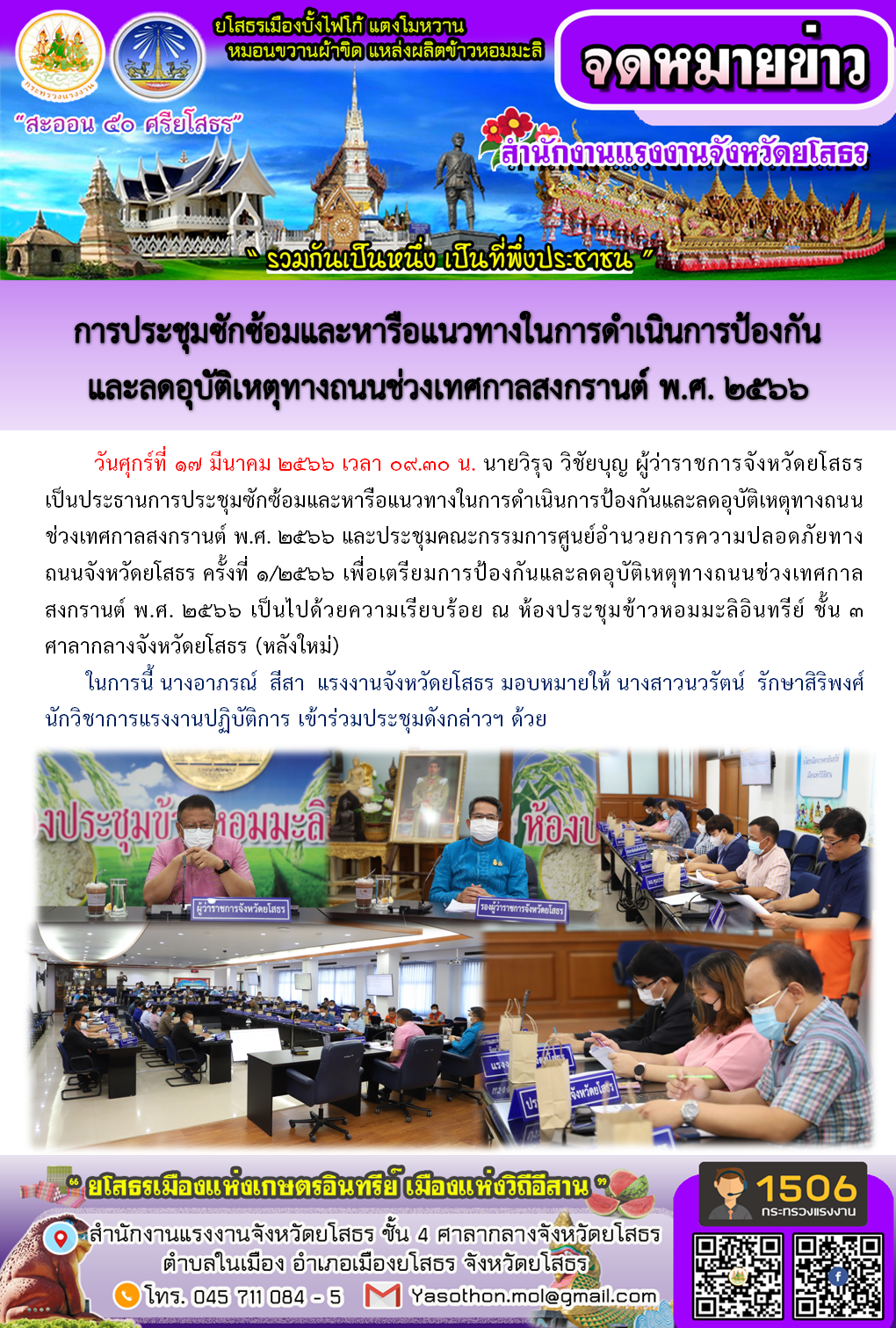 การประชุมซักซ้อมและหารือแนวทางในการดำเนินการป้องกันและลดอุบัติเหตุทางถนนช่วงเทศกาลสงกรานต์ พ.ศ. 2566
