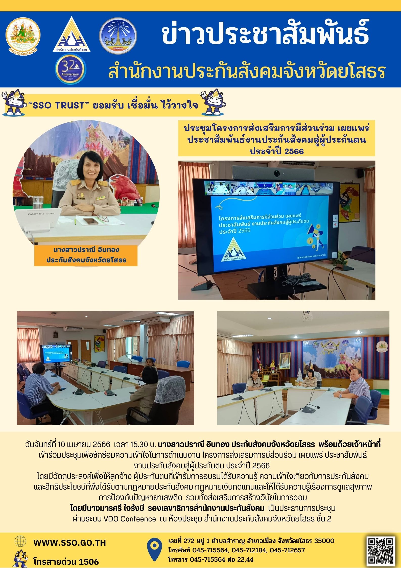 สำนักงานประกันสังคมประชุมโครงการส่งเสริมการมีส่วนร่วม เผยแพร่ ประชาสัมพันธ์งานประกันสังคมสู่ผู้ประกันตน ประจำปี 2566