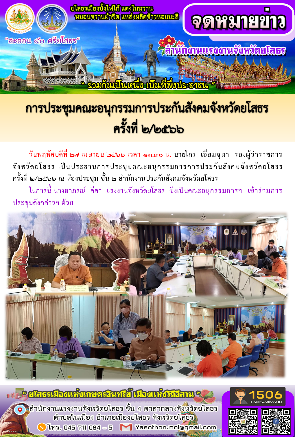 สำนักงานแรงงานจังหวัดยโสธร เข้าร่วมการประชุมคณะอนุกรรมการประกันสังคมจังหวัดยโสธร ครั้งที่ 2/2566