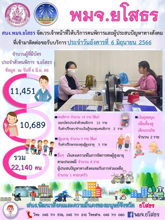 สนง.พมจ.ยโสธร จัดเวรเจ้าหน้าที่ให้บริการคนพิการและผู้ประสบปัญหาทางสังคม ที่เข้ามาติดต่อขอรับบริการ (6 มิถุนายน 2566)